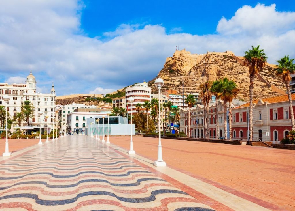 Paseo marítimo bordeado por palmeras y adoquinado en tonos rojizos, amarillos y negros, formado por más de 6,5 millones de teselas de mármol. Une el puerto deportivo con la Plaza Puerta del Mar. Es el lugar idóneo para dar un paseo al atardecer, disfrutar de conciertos callejeros o sentarse en alguna de sus terrazas con vistas al Mediterráneo. Es la entrada natural al Castillo de Santa Bárbara por el ascensor.